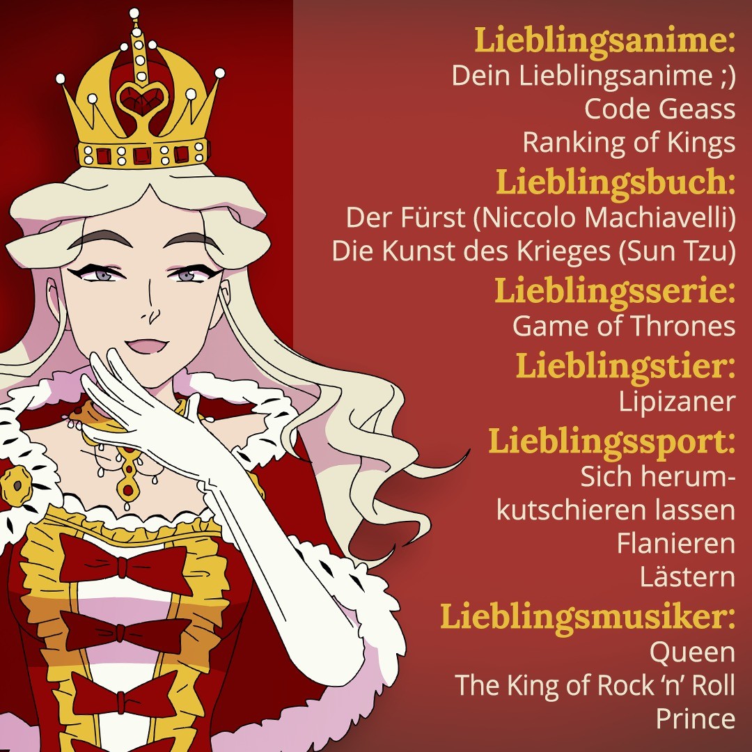 - Der royale Steckbrief muss berücksichtigt (eingearbeitet) werden.